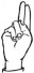 На ћирилици написано РАДЕ ГРУБНИЋ састоји се из 11 слова [?]. Исписано ћириличном једноручном азбуком за глувонеме: